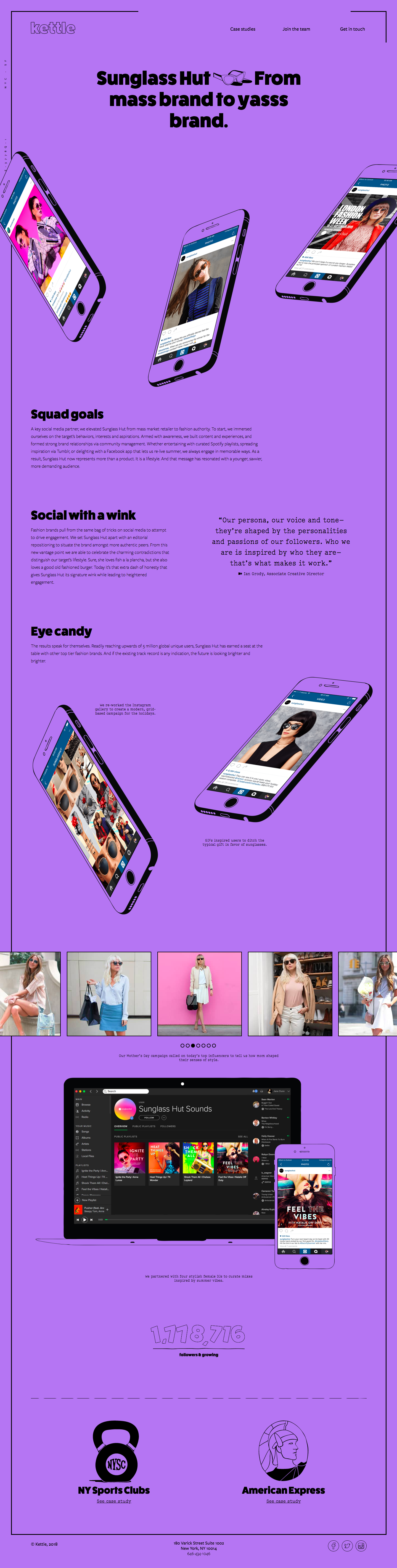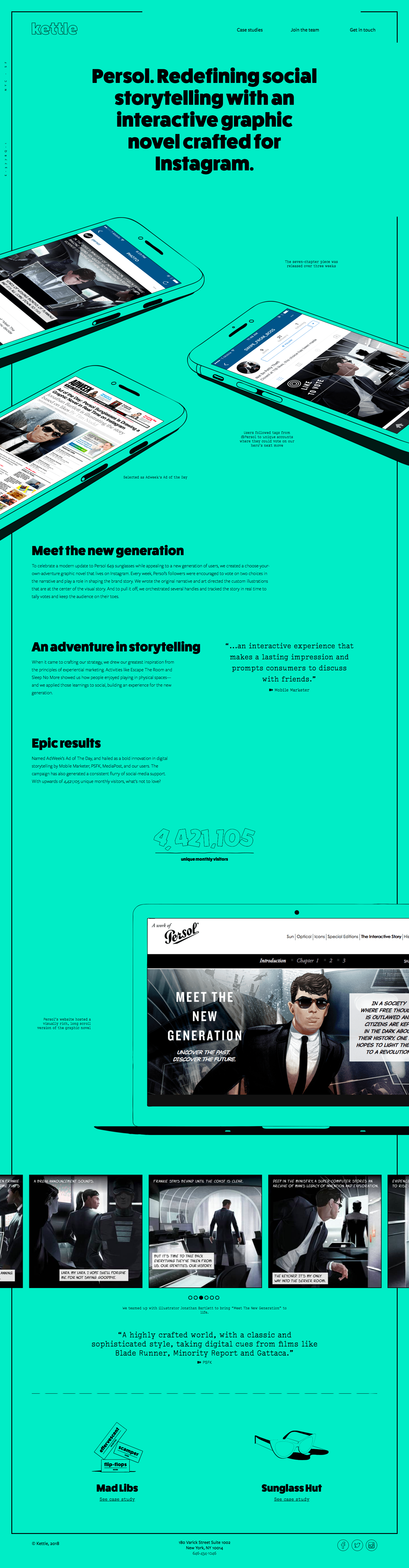 Kettle did a full refresh of its branding and website to convey its evolution while updating its project case studies. As a producer on this project, I was responsible for editing copy, providing input on the visual storytelling of various case studies and working with our developers to QA the website.